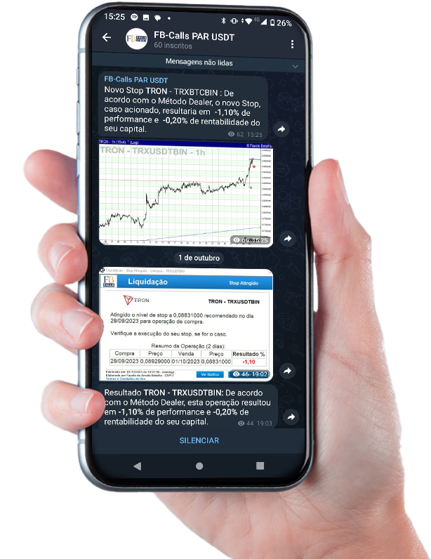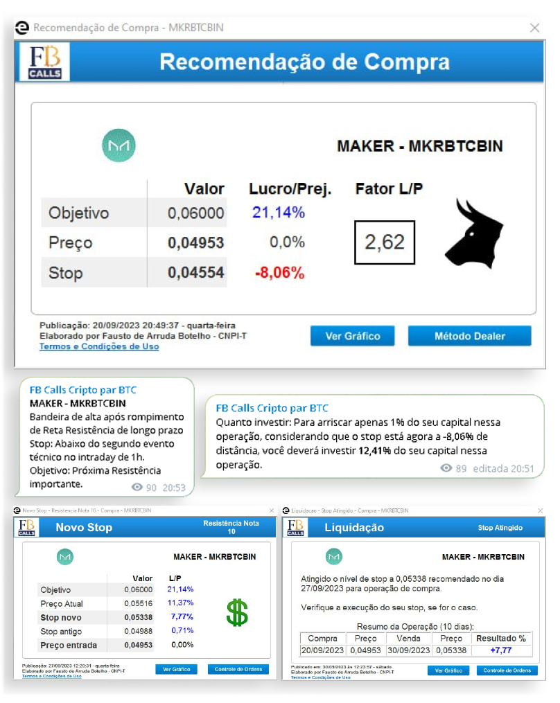 Receba recomendações de operações de SWING TRADE de compra, mudança de stop e liquidações de posições de criptoativos sob a supervisão do Fausto Botelho e sua equipe de analistas, "Os Boinas Verdes" com a possibilidade de automatizar todo o processo.